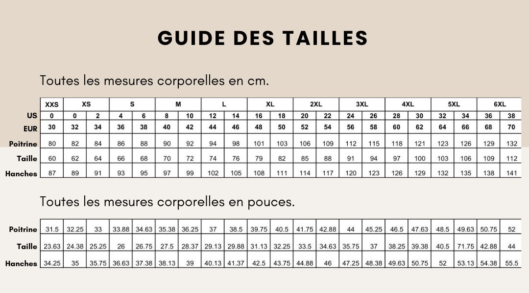 TAILLES : XXS au 6XL. Toutes les tailles se trouvent sur le même patron.